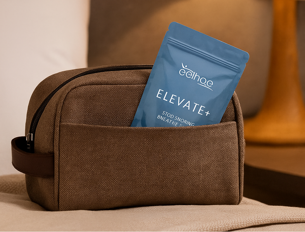 ELEVATE+™ works by gently keeping your mouth closed during sleep, promoting natural nasal breathing instead of mouth breathing. This reduces throat vibration — the main cause of snoring — and helps you (and your partner) enjoy quieter, deeper rest.